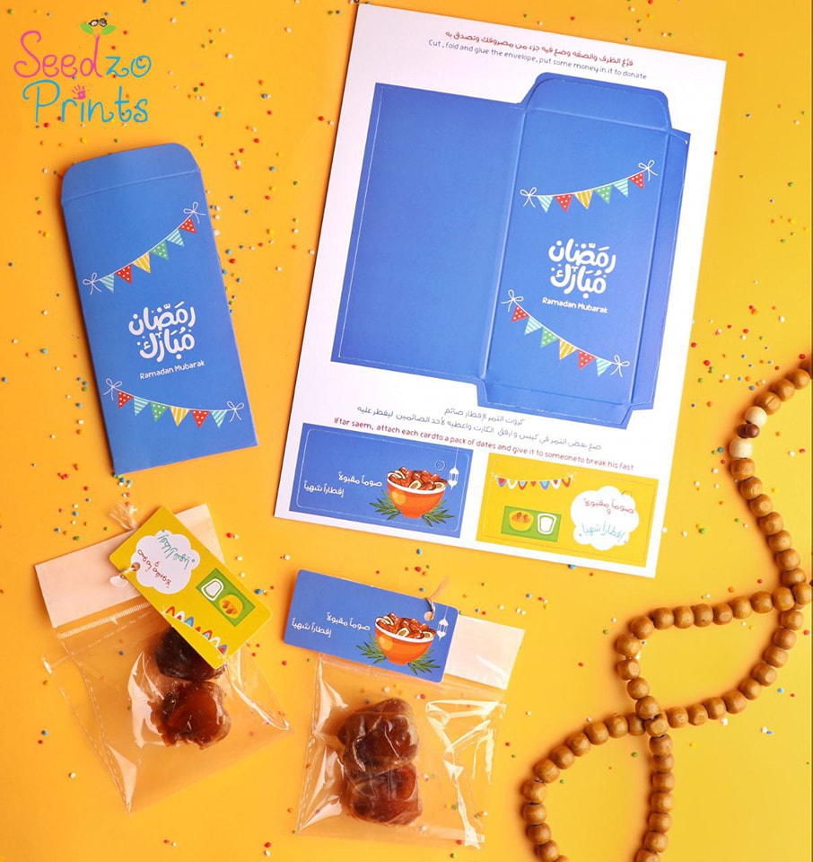 ( كروت التمر ) اجعل طفلك يضع بعض التمر في كيس ويضع عليه البطاقة ويهديه لأحد الصائمين ليفطر عليه ![]()